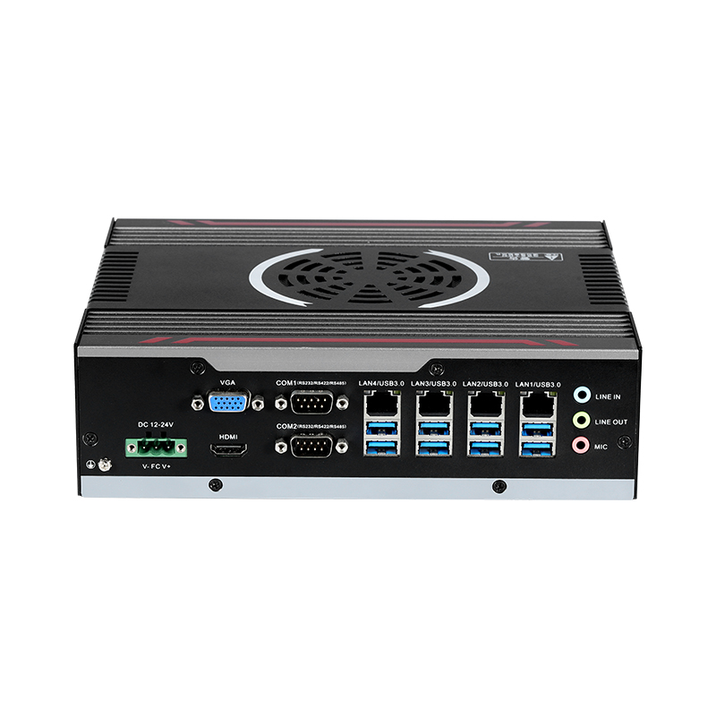 穩定可靠 : 純工業設計,強勁解熱熱管與純銅一體化的優良散熱結構,全密封鋁合金箱體,大面積鋁鰭散熱,可實現橫向與豎向等多種放置的自然對流散熱,機箱可抗接觸式6KV強電磁干擾,DC12V-24V寬壓輸入