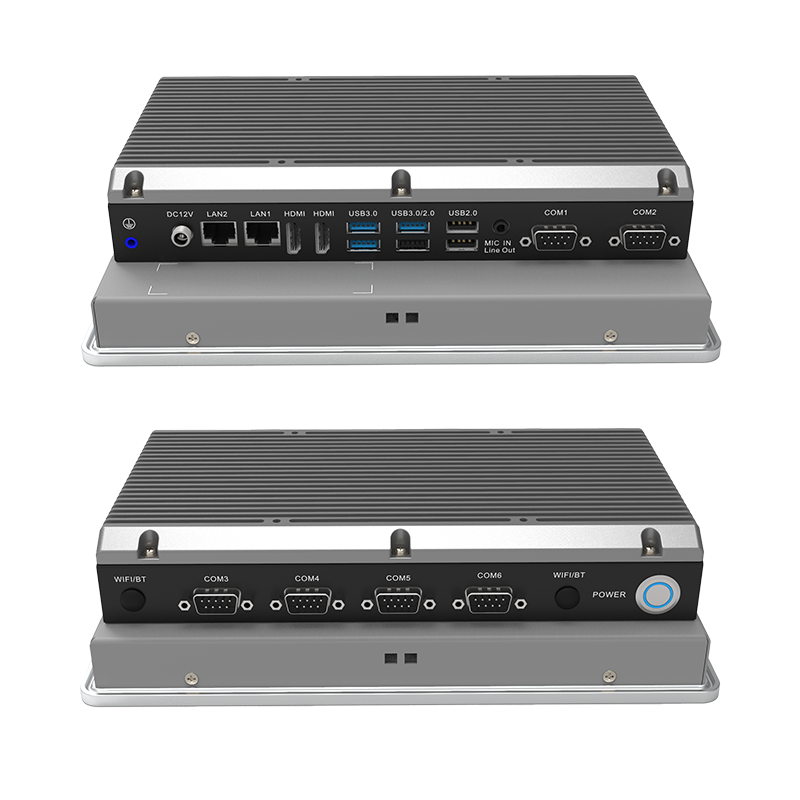 低功耗:英特爾® 賽揚® J6412 板載處理器,TDP 10W外觀設計:鋁合金一體成型,工藝精細,科技時尚穩(wěn)定可靠:純工業(yè)無風扇設計,大面積鋁鰭散熱,箱體材質可抗接觸式6Kv強電磁干擾;液晶屏接觸處加強型密封膠圈設計,面板防水防撞擊人機界面友好:純屏10點工規(guī)電容觸控,操作更便利接口豐富:2*LAN(Intel),6*COM,3*USB3.0,3*USB2.0,2*HDMI,1*M.2(KEY-M,2280,支持PCIE x2信號 NVME SDD),1*Mini PCIE(全高,PCIE+USB信號,支持WIFI/BT)